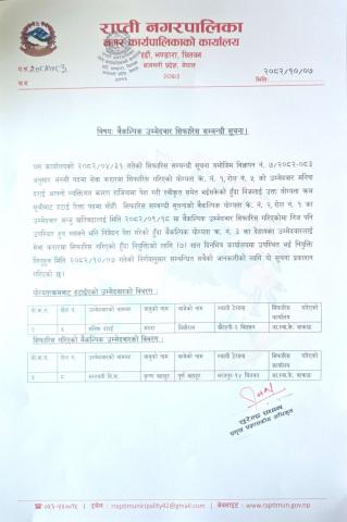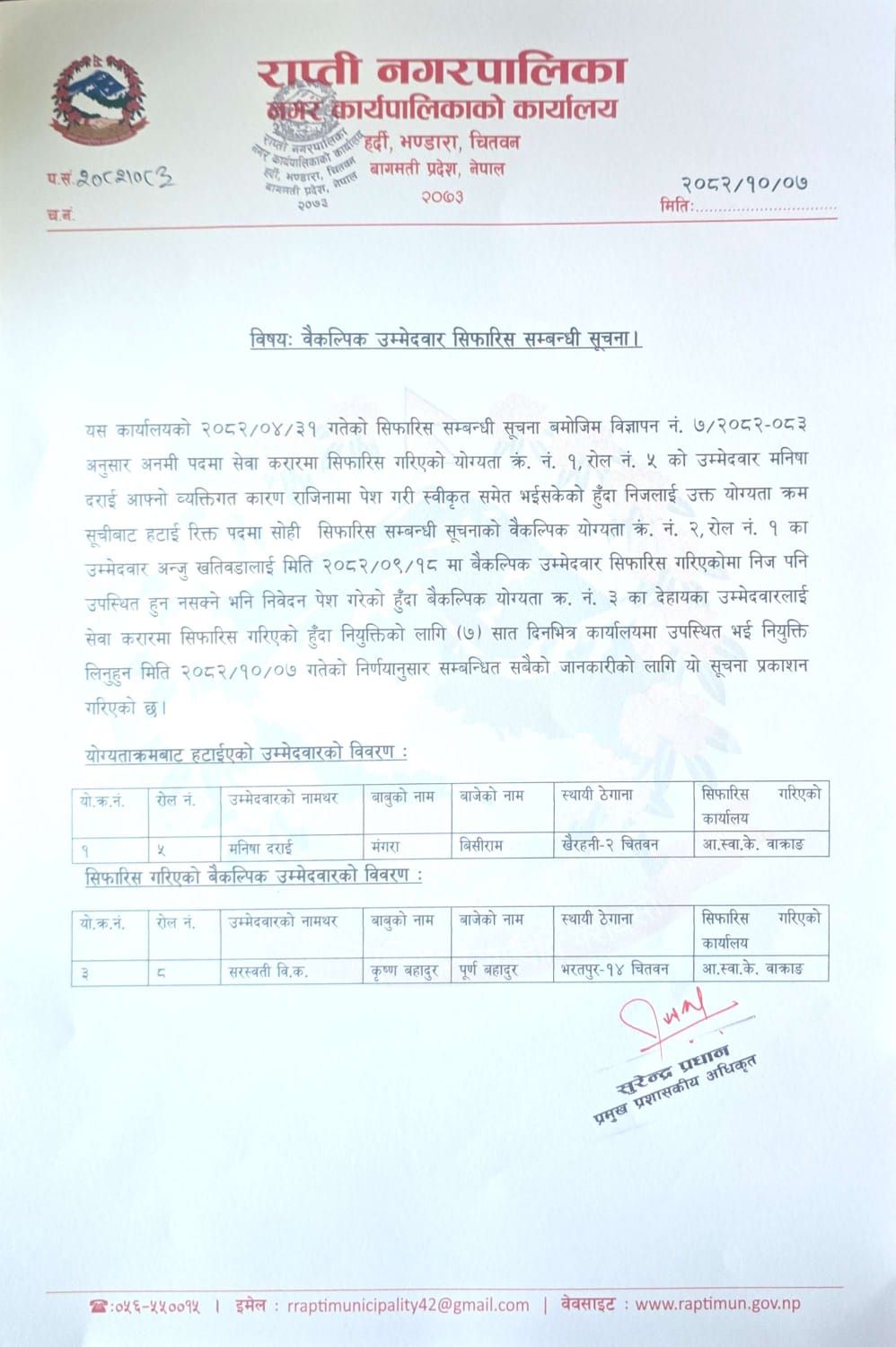 अनमी पदको लागि सेवा करारमा वैकल्पिक उमेदवारको सिफारिस सम्बन्धमा ।
